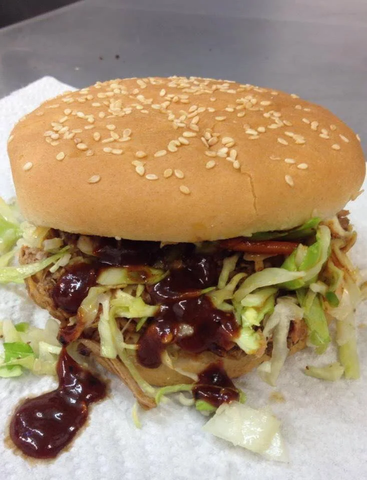 Pork Spare Ribs $6.00-Though our ribs are cut in the St. Louis style that is where the similarity ends. Our ribs are rubbed down and smoked for about 5 hours, but about half way through the cooking process we start basting our ribs with a magical elixir of honey and butter that takes these ribs to the next level of smokey goodness.